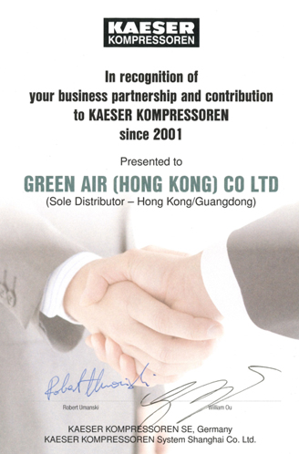 明利(香港)有限公司{Green Air (Hong Kong) Co. LTD.}是德國(guó)凱撒授權(quán)在中國(guó)廣東省和港澳地區(qū)的總代理。廣州市明愷工業(yè)設(shè)備有限公司 是 明利(香港)有限公司 在中國(guó)大陸注冊(cè)投資的一家外資公司,主要負(fù)責(zé)凱撒空壓機(jī)及其后處理系統(tǒng)在中國(guó)廣東省的銷售、安裝、維修服務(wù)。明利(香港)有限公司于1993年開(kāi)始跟KAESER合作,我們衷心希望能通過(guò)我們的努力和您的配合,把空壓機(jī)行業(yè)的先進(jìn)技術(shù)介紹給每一個(gè)客戶,從而更好地貫徹KAESER的宗旨,樹(shù)立KAESER空壓機(jī)的良好形象。